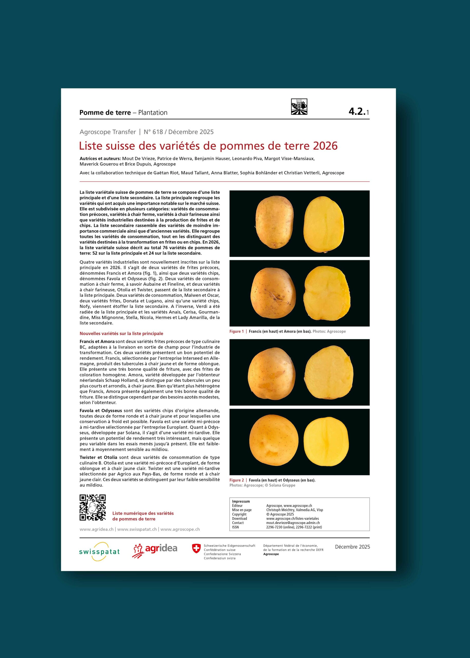 Liste suisse des variétés de pommes de terre 2026 (pages individuelles)